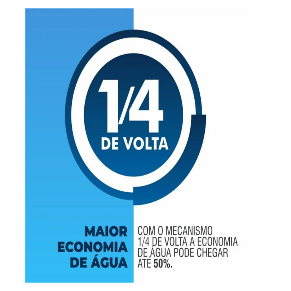 Com sistema de acionamento de 1/4 de volta, proporciona um fechamento rápido e preciso, reduzindo o desgaste e aumentando a vida útil do produto. Acompanha uma bitola de 1/2", compatível com as instalações hidráulicas padrão.