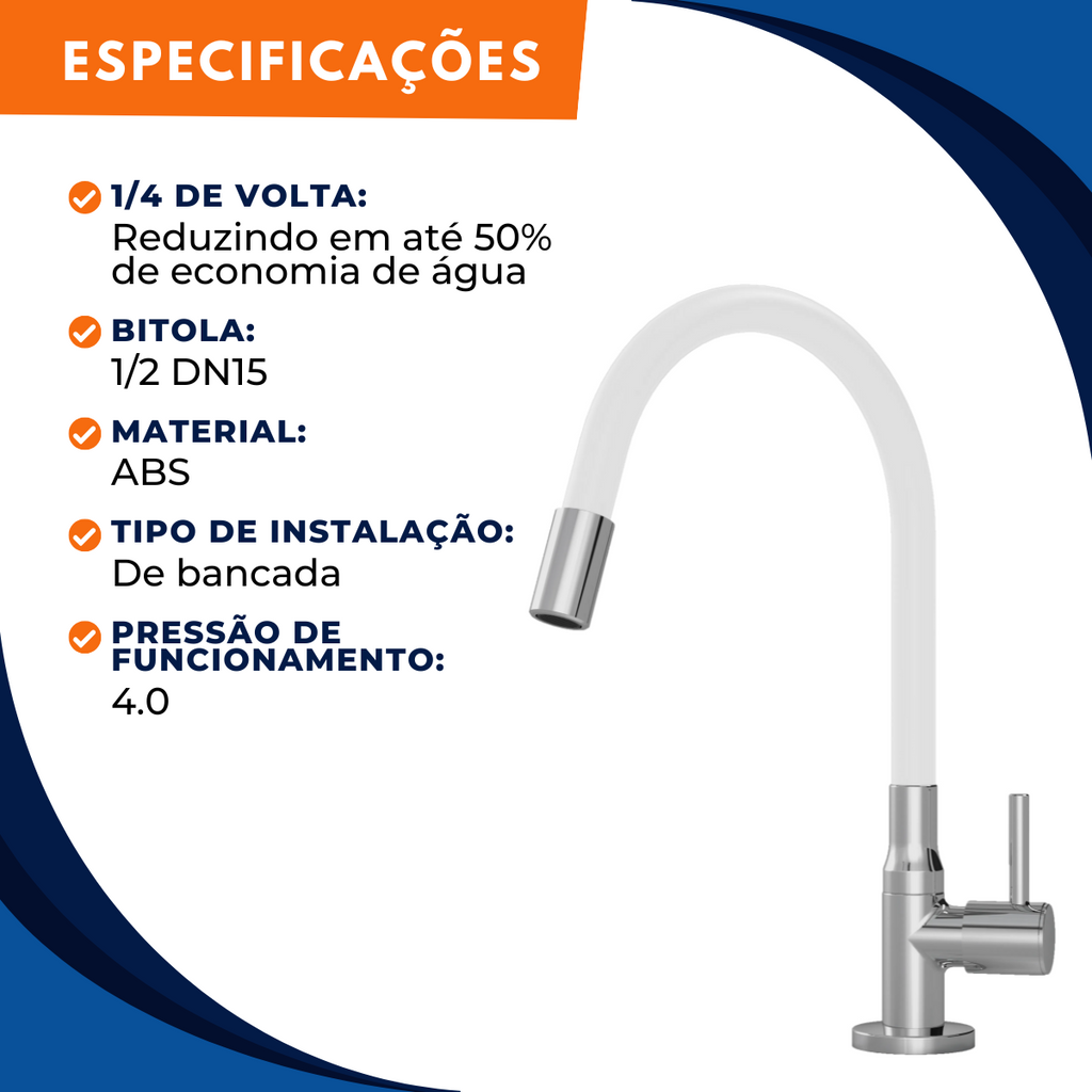 Fabricada em abs, é uma peça durável e confiável, projetada para instalação de bancada e ideal para cozinhas modernas e funcionais. Sua conformidade com a norma 10281/15 garante qualidade e segurança. A linha Colorflex da Real proporciona um estilo elegante com mobilidade para facilitar as tarefas diárias.