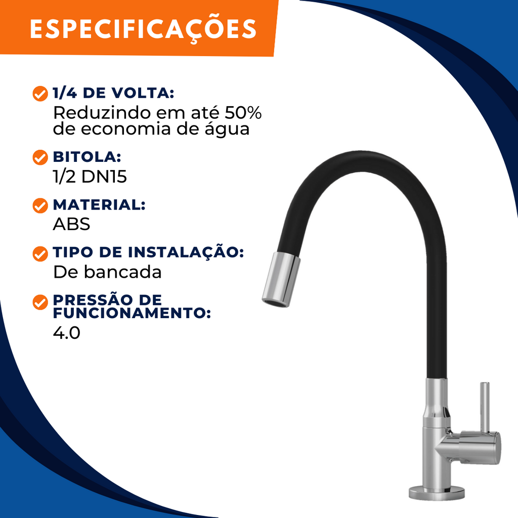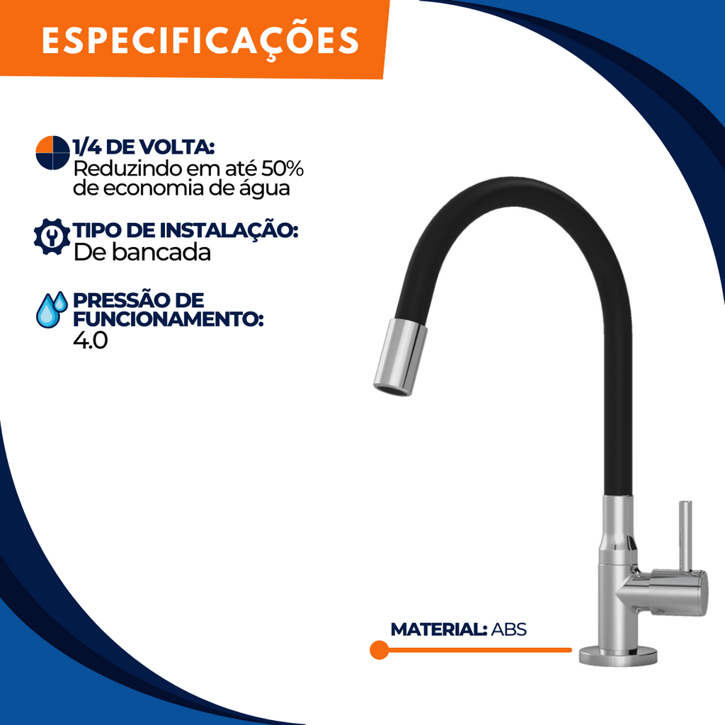 Fabricada em abs, é uma peça durável e confiável, projetada para instalação de bancada e ideal para cozinhas modernas e funcionais. Sua conformidade com a norma 10281/15 garante qualidade e segurança. A linha Colorflex da Real proporciona um estilo elegante com mobilidade para facilitar as tarefas diárias.